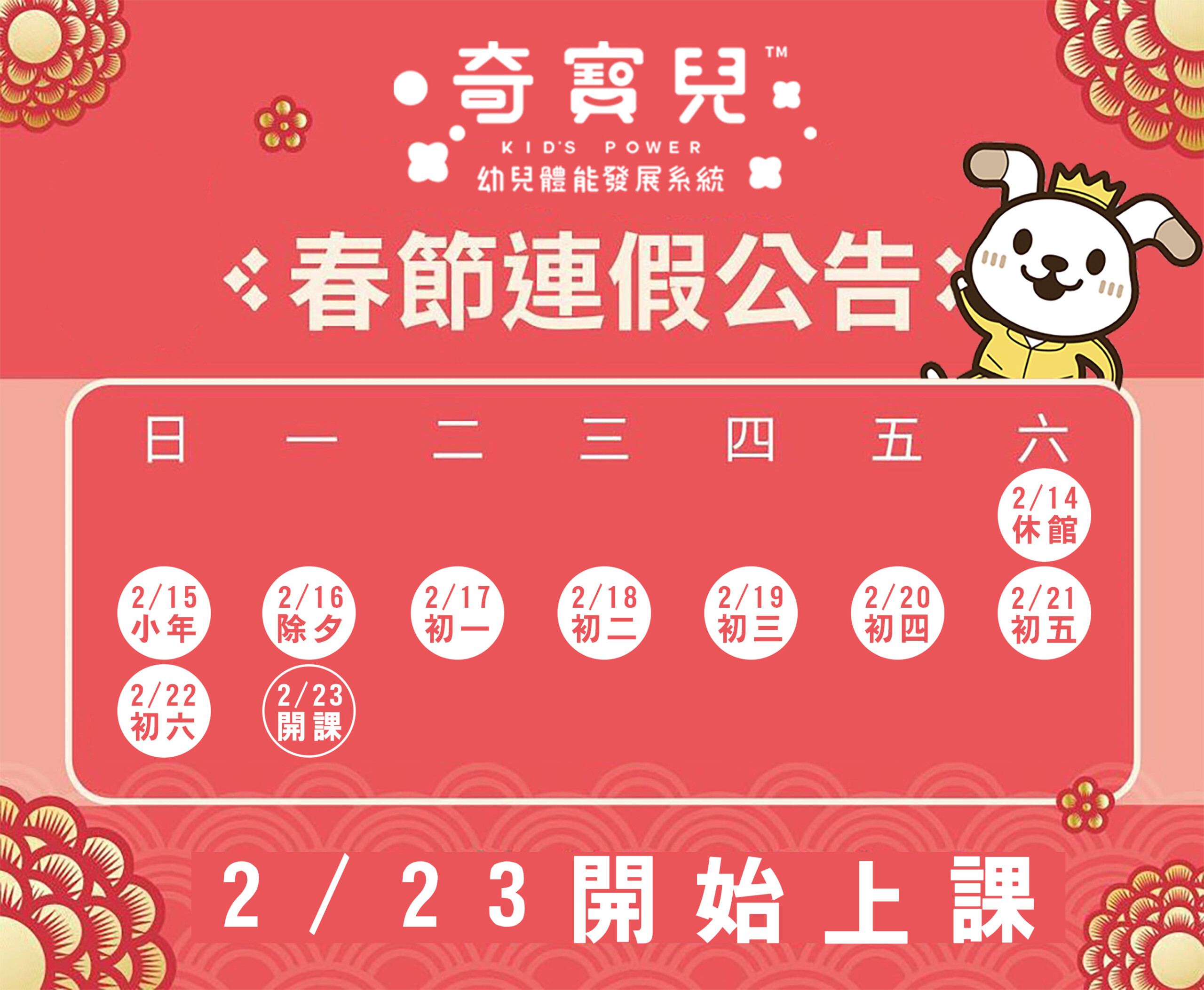 【奇寶兒・春節連假公告】